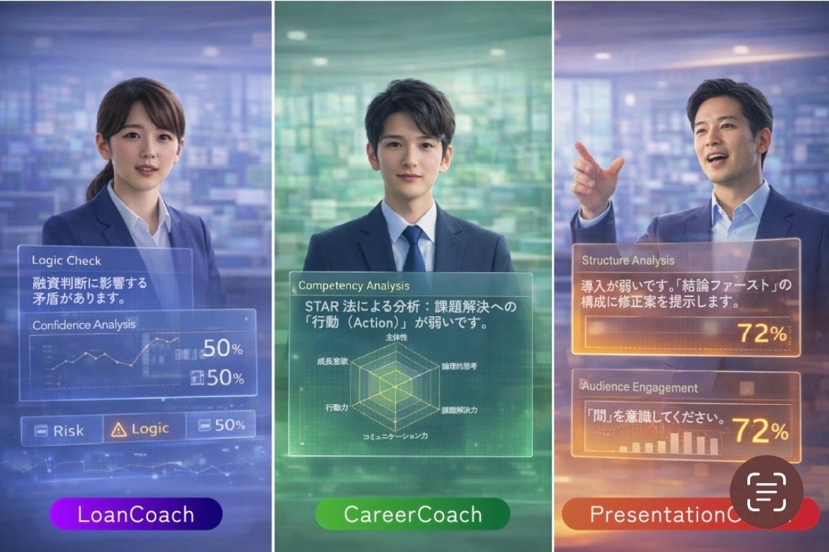 株式会社comipro(本社:東京都港区、代表取締役:櫻井知里)は、話している内容、表情、声、資料をリアルタイムで統合解析する「コンテキスト理解型マルチモーダルAI」を搭載した、AI対話コーチングプラットフォーム『Mirror X(ミラークロス)』をローンチいたしました。 本日より、就活・商談・融資の各シーンに特化した3つのエキスパートモデルを提供開始します。