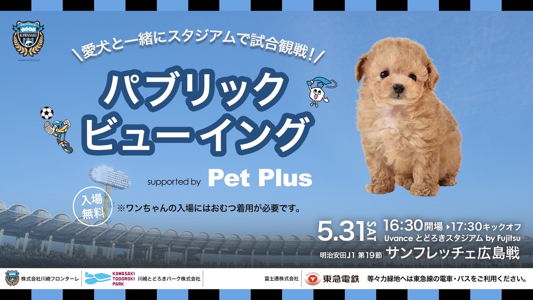 ペットショップ「ペットプラス」、 および「ペットプラストリミングサロン」を中心に、全国に 176 店舗を展開する株式会社AHB (本社:東京都江東区、代表取締役:川口 雅章)は、株式会社川崎フロンターレとパートナー契約を締結しております。このたび、 2025 年 5 月 31 日(土)17:30 より 開催されるJ1リーグ 川崎フロンターレ vs サンフレッチェ広島戦(アウェイ戦)に合わせ、川崎フロンターレのホームスタジアムである「 Uvance とどろきスタジアム by Fujitsu 」にて、愛犬同伴が可能な『パブリックビュ ーイング with ワンちゃん』を開催いたします。