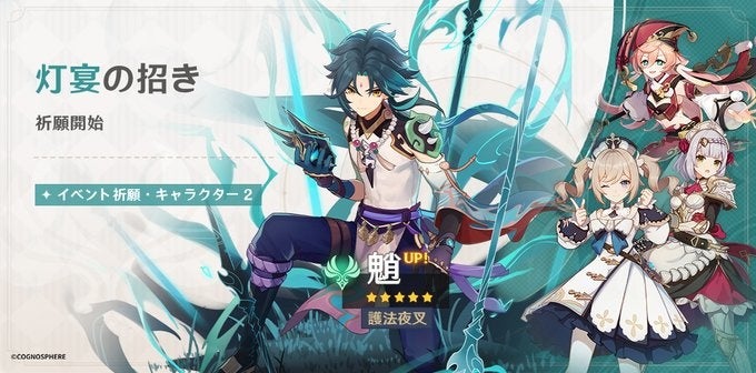 新★5「夜蘭(水)」(CV:遠藤綾)、★5「魈(風)」(CV:松岡禎丞)がイベント祈願に登場!