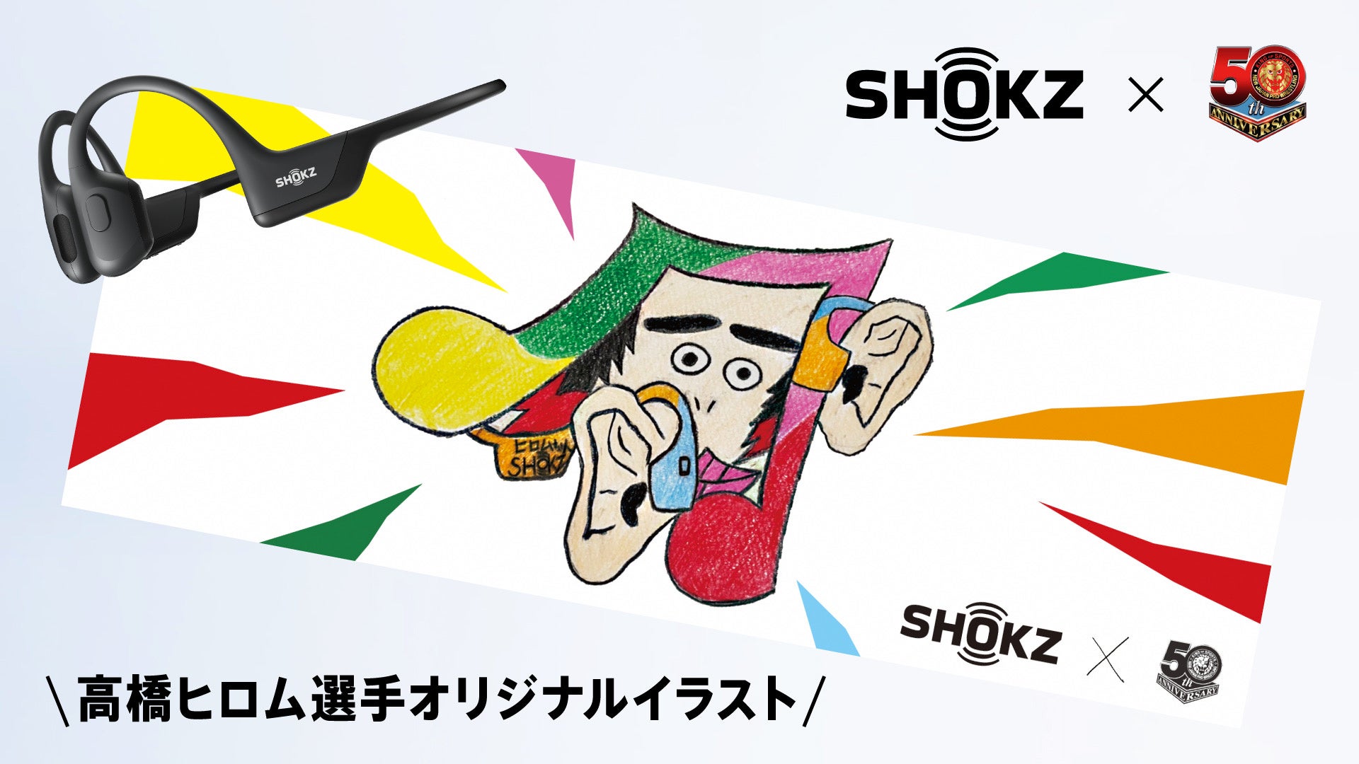 Shokz11周年記念コラボ「新日本プロレス x Shokz」 高橋ヒロム選手オリジナルイラスト コラボタオル付商品を限定販売