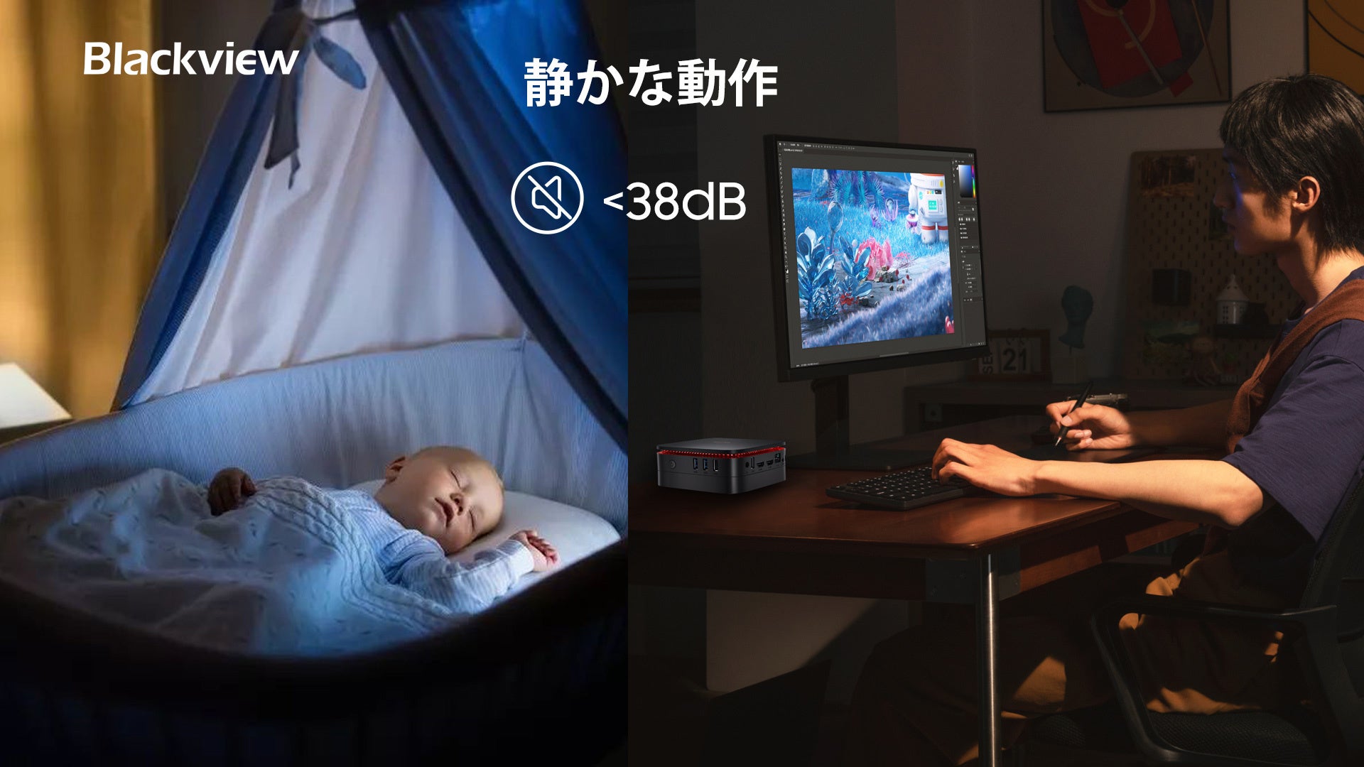 MP60は優れたノイズ低減方法と省電力なCPUのおかげで、仕事や勉強、クリエイティブな用途に適した静かな動作をします。