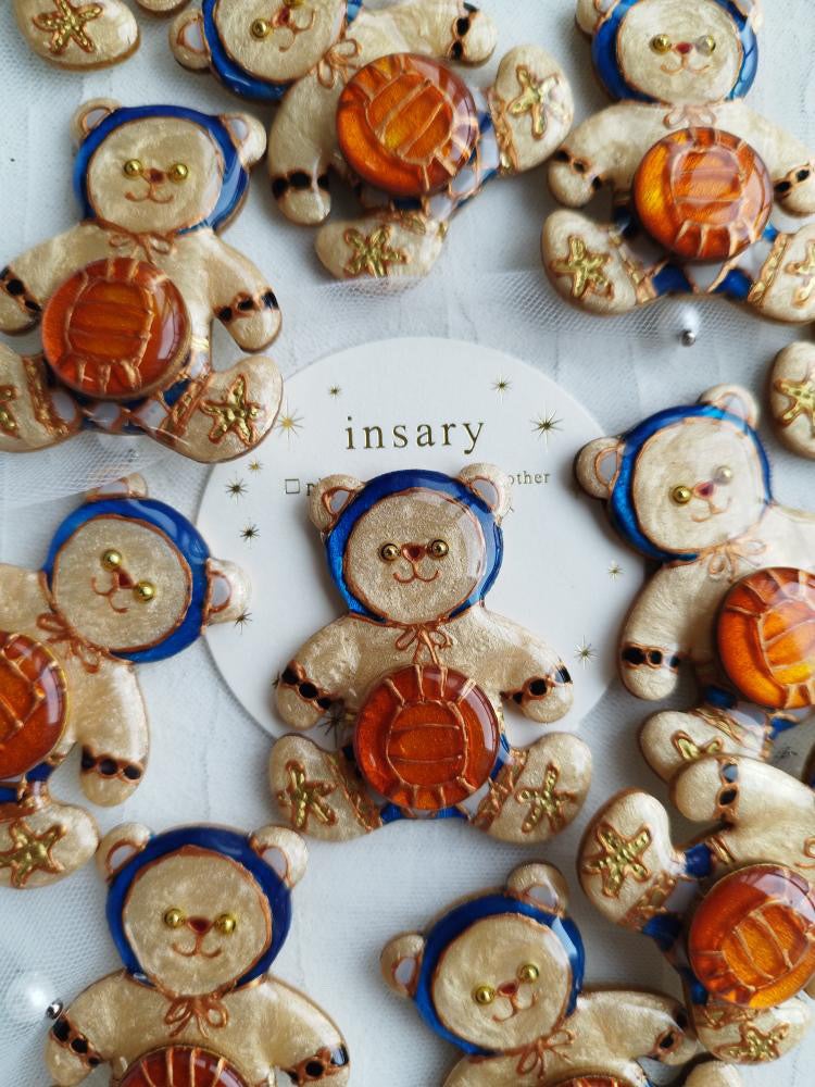 一つ一つ手描きの水球くまブローチや水泳くまブローチが数量限定で登場します。