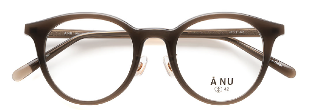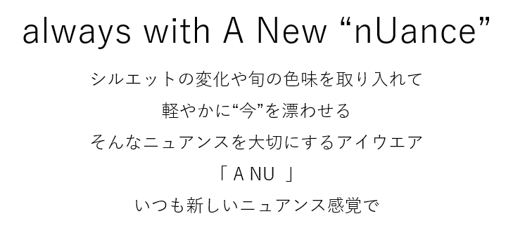 新作の「A NU」は、クラシックでありながらトレンドをおさえた洗練されたデザインが特徴のメガネフレームです。フレームカラーには今年トレンドのクリア系を展開しました。