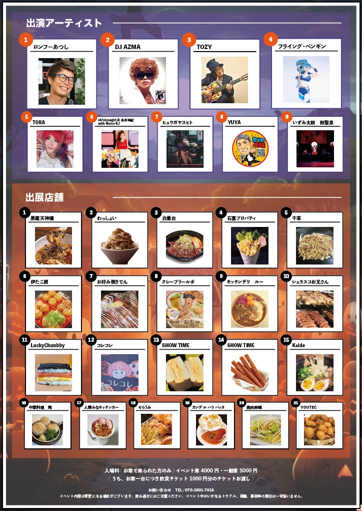 美食の宝庫!ハロウィンデコトラフェスには20組以上の飲食店舗が出展します。