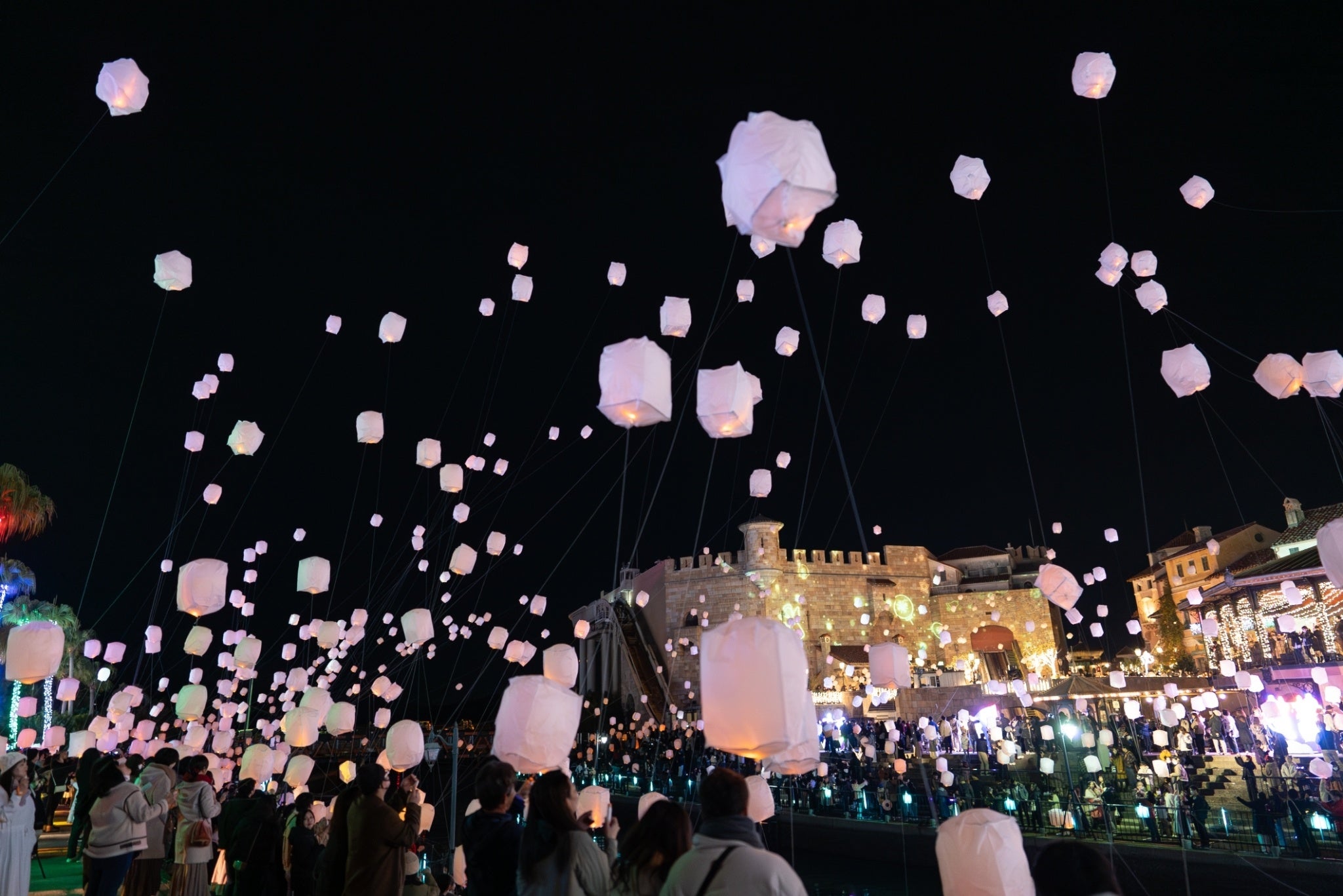 過去最大の入場者数を記録した2023年12月9日(土)は、今季最後のフェスタ・ルーチェランタンフェスの開催日。ランタンのチケットは800枚が完売し、フェスタ・ルーチェでしか見ることができないヨーロッパのお城や街並みを背景に無数のランタンが浮かび、幻想的な冬の夜空をひと目見ようと多くの方にご来場いただきました。