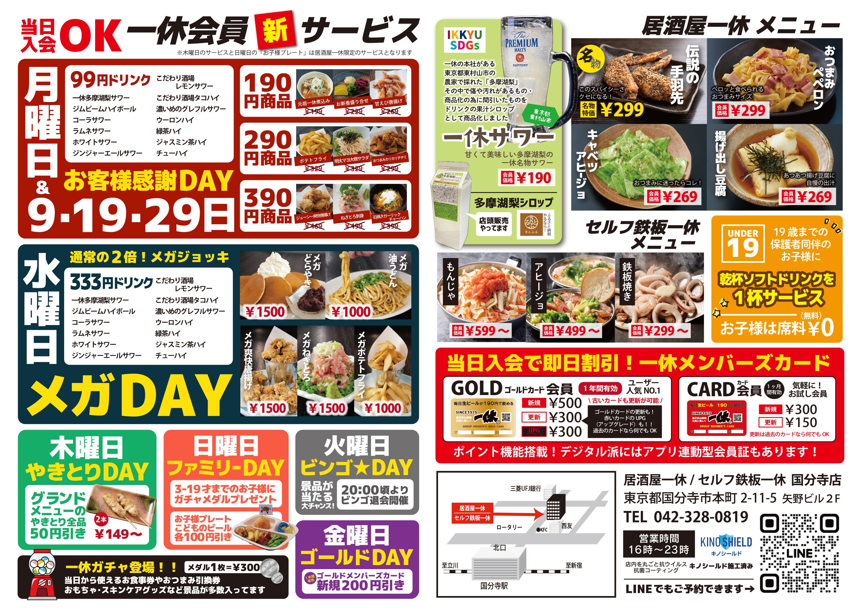 一休会員は2店舗共通 いつでも生ビール、ハイボール、レモンサワーが190円!! 全品安心税込価格