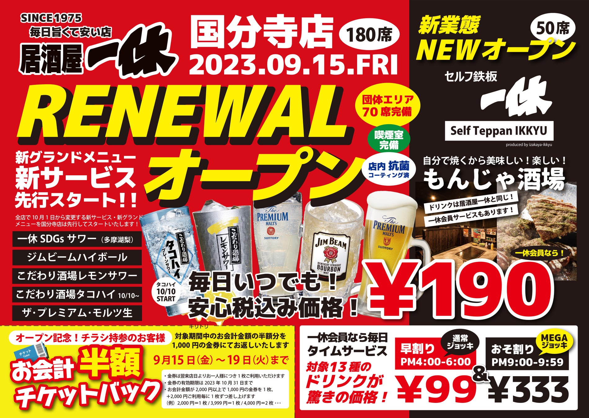 ◆居酒屋一休 セルフ鉄板一休 国分寺店リニューアルオープン