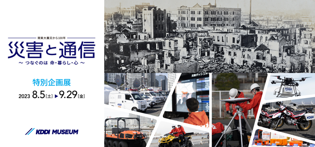 本企画展では、関東大震災から100年の節目の年となる2023年に、過去100年の大災害を振り返りながら、お客さまが対策できる有事への備えやKDDIの災害対策の取り組みを紹介します。
