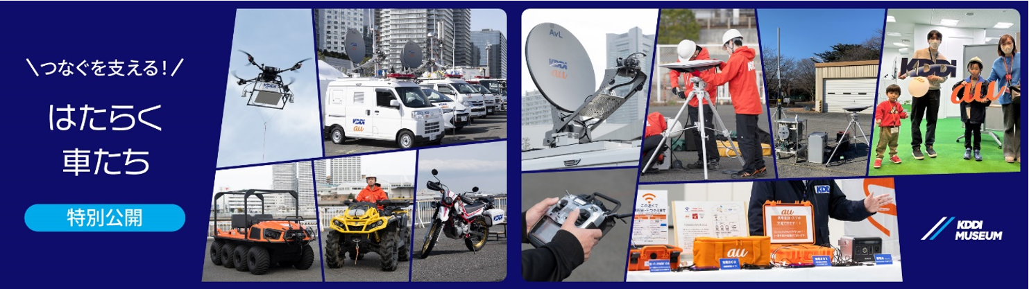 また、8月19日には、災害時に通信を支える車載型基地局などの車両や機材をKDDI MUSEUMに展示します。