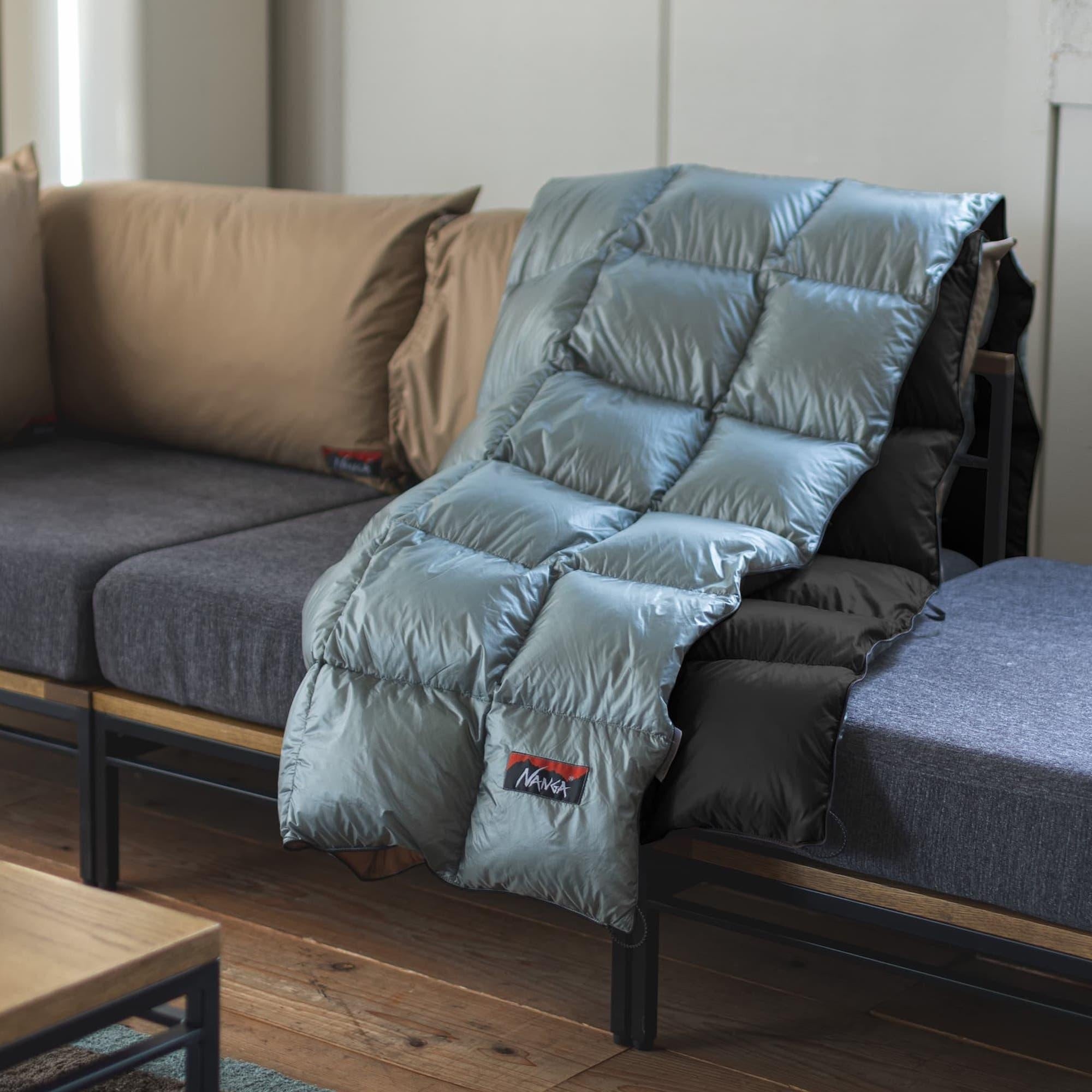 NANGA製カバーには、NANGAの定番生地のオーロラテックスを採用し、一見シェラフが並べてあるかのような遊び心も加味しています。