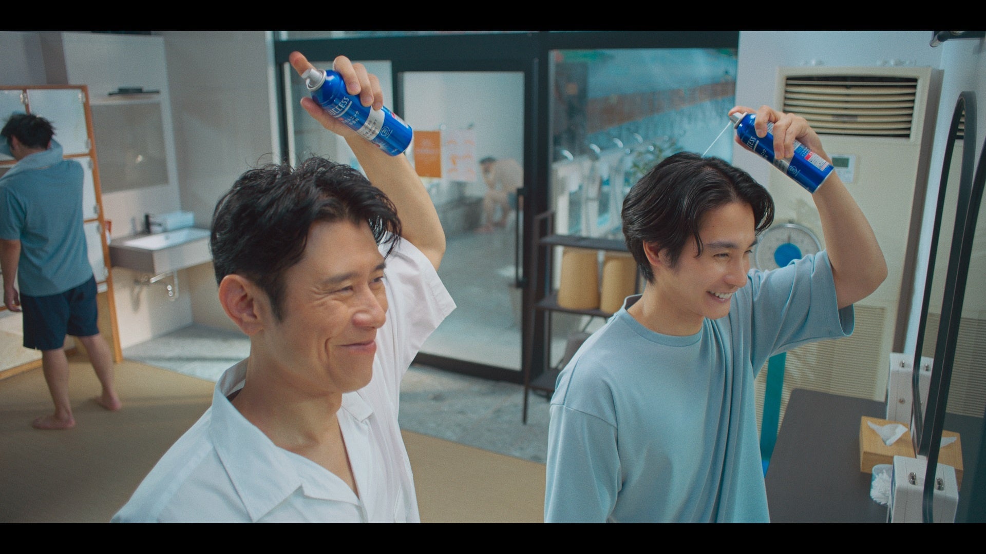 本ブランドムービーは、AI技術を用いて、20歳若返った原田泰造さんと現在の原田泰造さんがサウナ室で共演します。露天風呂に浸かりながら“いい年のとり方”について話す原田泰造さんと中村蒼さんのシーンから始まり、原田泰造さんがサウナ室に入ると、AI技術により再現された20代の原田泰造さんと対面。20代の原田さんから“今を大切に”という言葉を投げかけられます。あの頃の夢や情熱を思い出した原田さんは、中村さんと共に、お風呂上がりに育毛トニックを使用しながら、まだまだこれから、と前向きな表情を浮かべます。