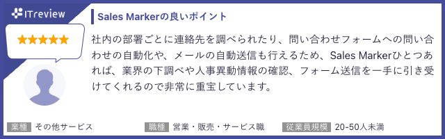 【ITreviewにおけるSales Markerに対するユーザーのコメントの例】