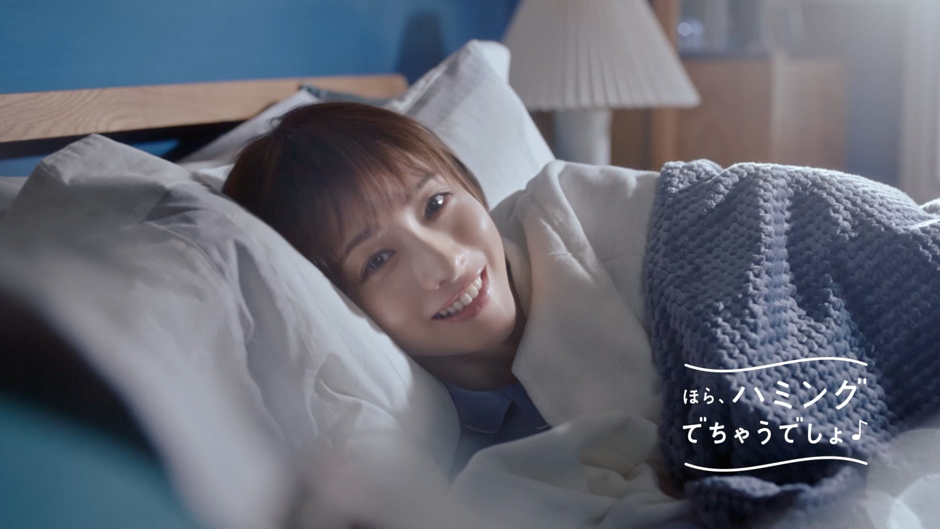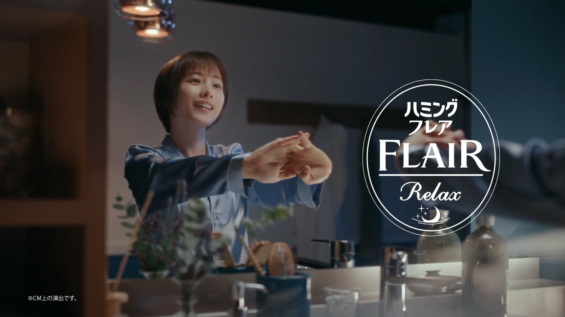 「リラックス気分の香りと極上の肌ざわり*1に浸る」がテーマの新TVCMでは、仕事から帰宅後パジャマに着替え、眠りにつく石原さんが「ハミングフレア リラックス」で洗たくした、極上の肌ざわり*1のブランケットに包まれ、深くやすらぐリラックス気分の香りの世界へ引き込まれる様子が描かれています。