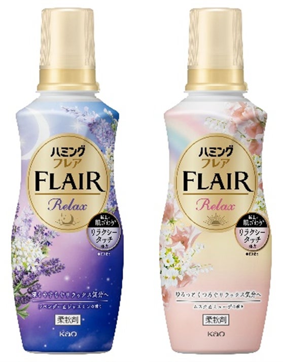 新シリーズとなる「ハミングフレア リラックス」は、“リラクシータッチ処方”を採用し、極上の肌ざわり*1を実現しました。柔軟剤の香りを通してリラックスしたい人に向けて、「深くやすらぐリラックス気分へ ラベンダー&ジャスミンの香り」と「ゆるっとくつろぐリラックス気分へ ムスク&ミューゲの香り」のなりたいリラックス気分で選べる2香調をラインアップしました。「ハミングフレア」は、柔軟剤に良い香りを求めるお客さまへ、“ダイヤモンドアロマ製法”で良い香りを提案する「ハミングフレア」と、リラックス気分の香りと極上の肌ざわり*1の“リラクシータッチ処方”の「ハミングフレア リラックス」でお応えしてまいります。