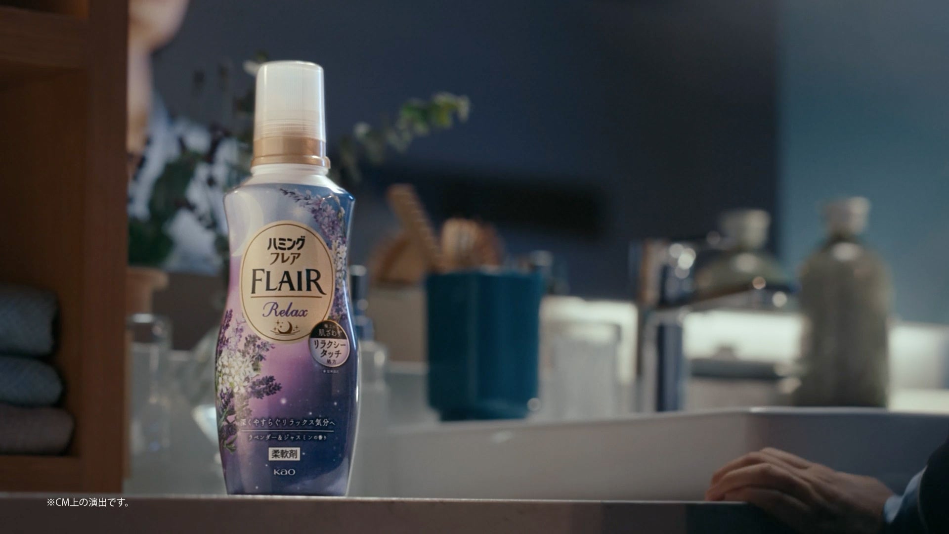 Q.「ハミングフレア リラックス」は香りにこだわってきたハミングフレアから、”リラックス気分の柔軟剤“という新しい考え方のラインです。撮影にあたって意識されたことや見どころを教えてください。