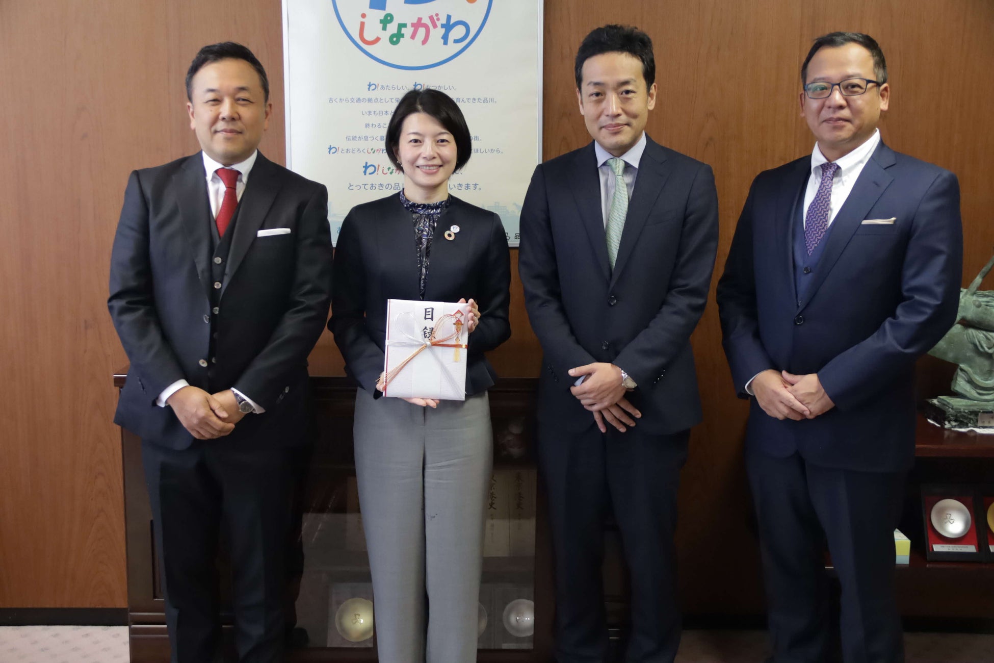 大成温調株式会社(本社:東京都品川区、代表取締役社長執行役員:水谷憲一、以下、大成温調)は、社会貢献活動の一環として、株式会社兼藤(本社:東京都品川区、代表取締役:安藤公一、以下、兼藤)、愛知産業株式会社(本社:東京都品川区、代表取締役社長:井上博貴、以下、愛知産業)と共同で品川区にお米を寄贈し、2023年12月26日、森澤品川区長に目録を手渡しました。