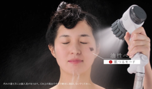 ミラブルプラスと同様に特許のトルネードミスト方式によるウルトラファインバブルを含むミスト水流は、洗顔などにお勧めです。油性ペンがシャワーだけで落ちていく様子を映しています。