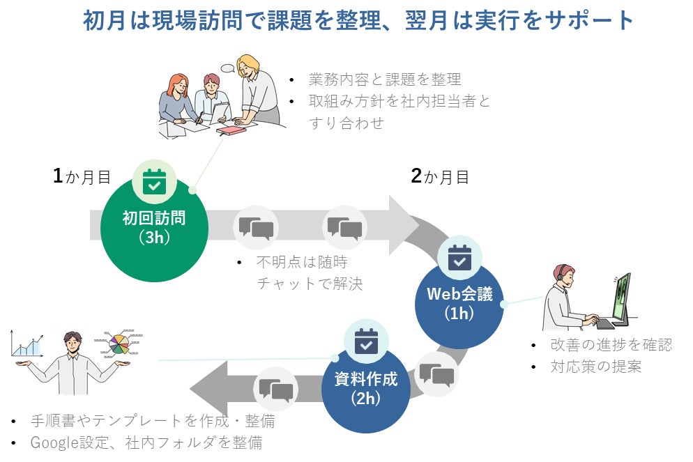 本サービスの最大の特長は、実務まで踏み込んで伴走するコンサルティング。