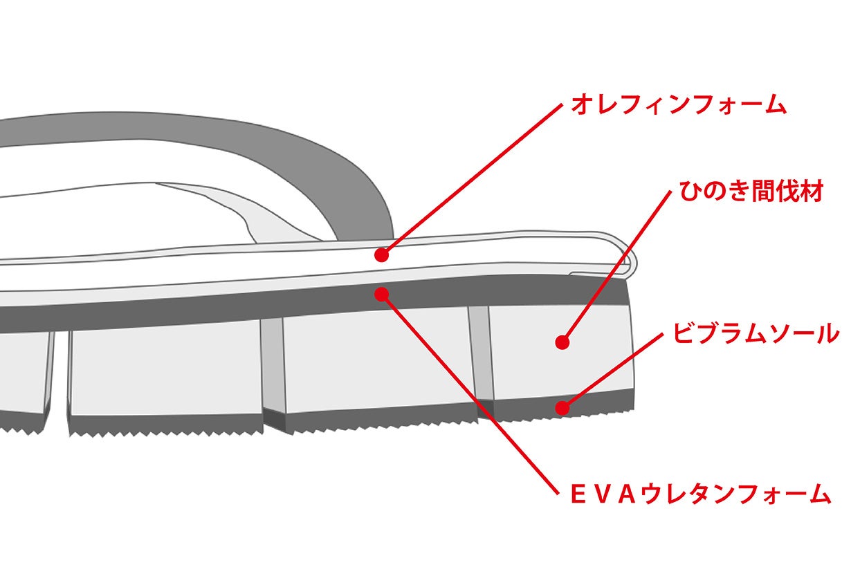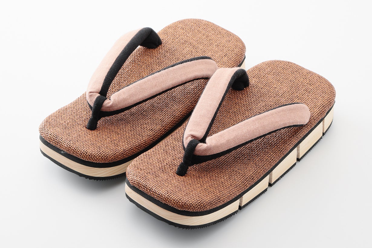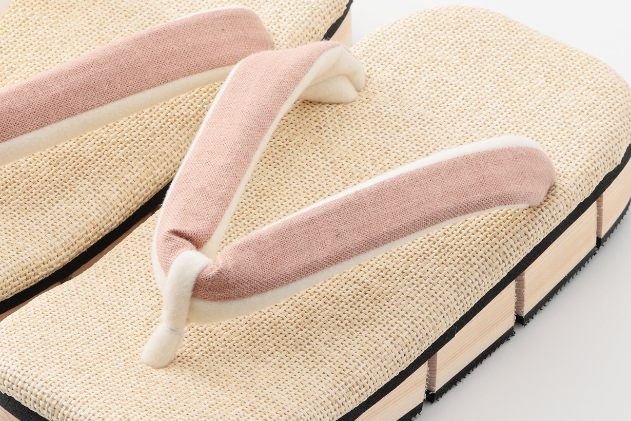 芯材にはクッション性のあるオレフィンフォームを使用し、その厚みを通常雪駄などで使用されているウレタンスポンジの2倍程度とすることで、長時間履いても足裏が痛くなりにくく、はじめて履く方にも気軽にご使用いただけるようになっています。