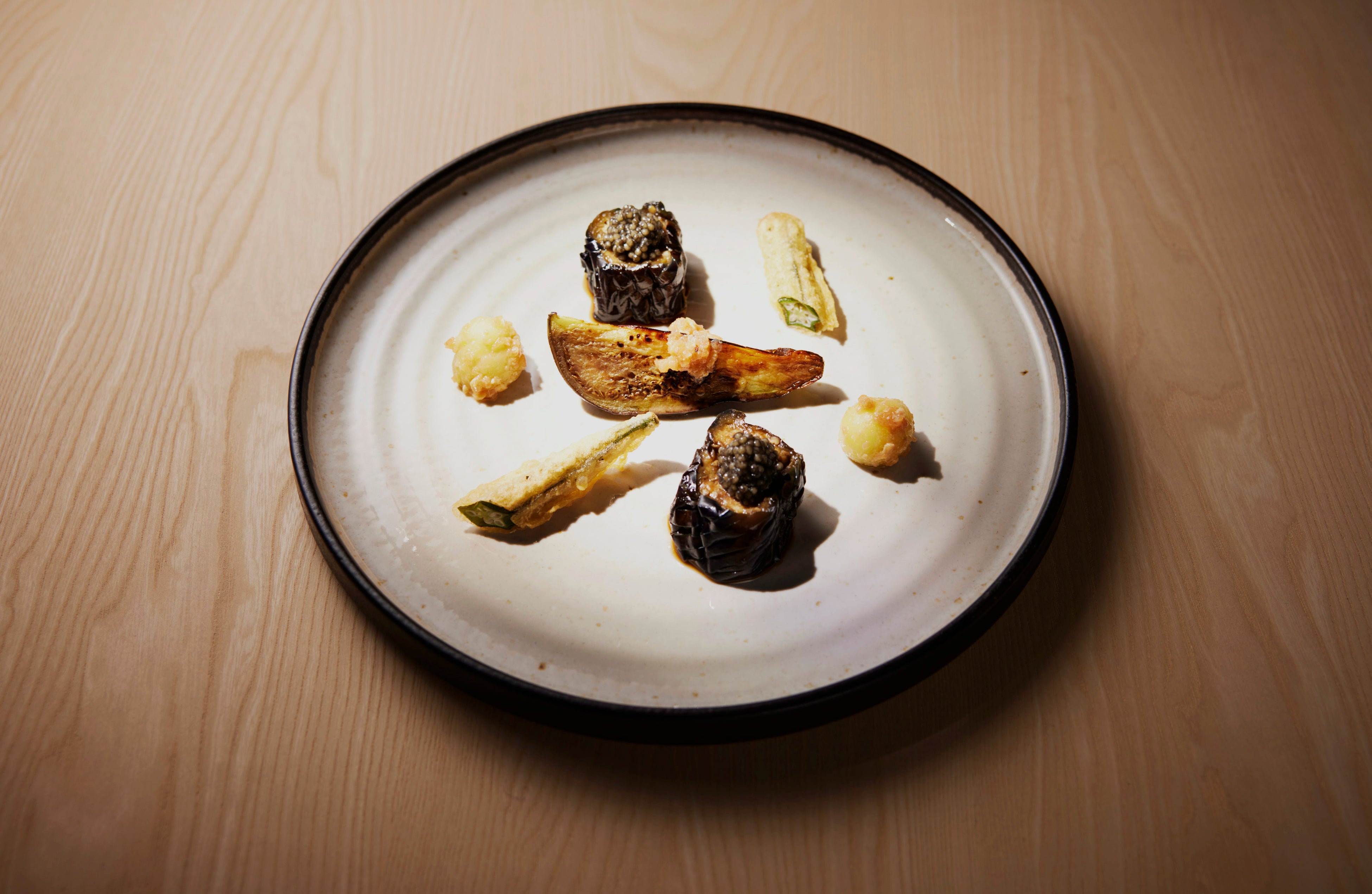 素材の背景にある土地の記憶や作り手の哲学、今という時間をすくい上げ、自然と人、文化と文化の間に浮かぶ “円(O)”として一皿に昇華する。