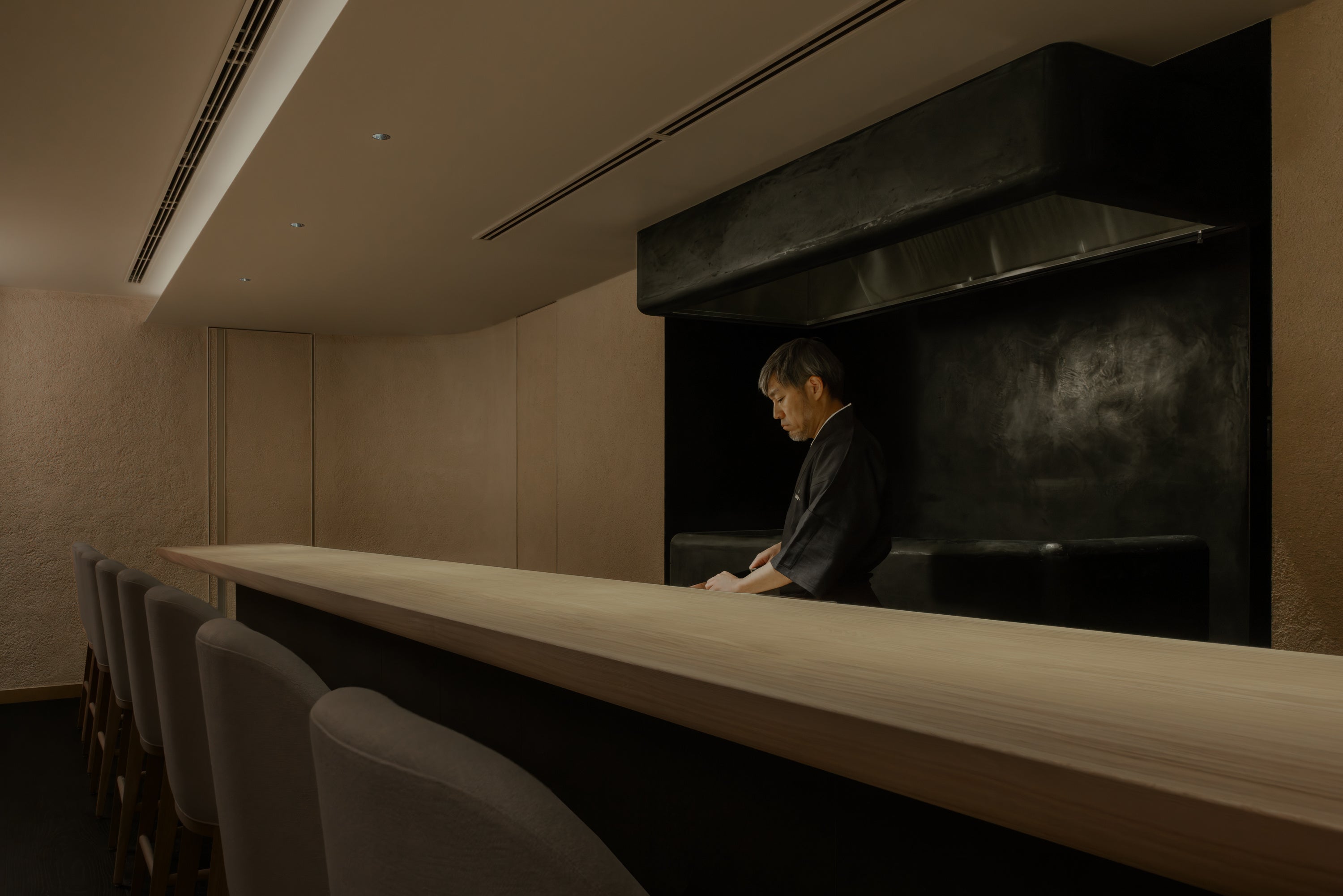 「O (オー) 」では、日本の精神を礎に、革新性と洗練を融合。素材・技術・時間が交差し、持続可能な未来へとつながる食体験を提供します。