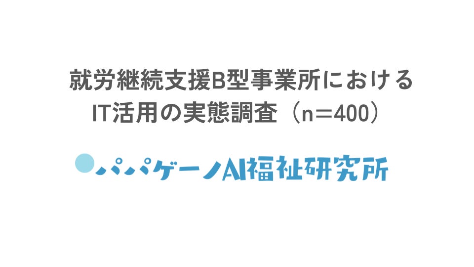 生成AIを活用した就労支援事業やAI支援記録アプリ「AI支援さん」の開発を行う株式会社パパゲーノ(代表取締役:田中康雅、住所:東京都杉並区)のパパゲーノAI福祉研究所は、全国の就労継続支援B型事業所で働く支援者400名を対象に実施した「就労継続支援B型事業所におけるIT活用の実態調査」の結果を発表いたしました。