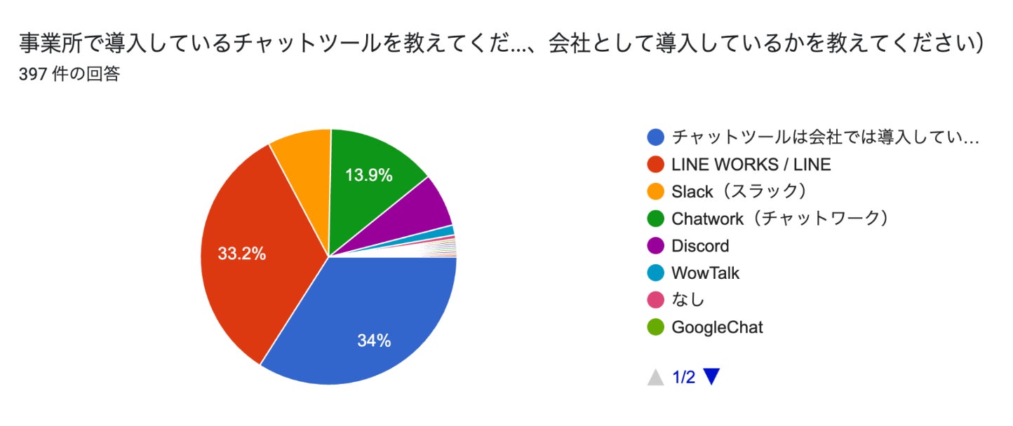 社内のコミュニケーションにSlack、ChatWork、LINE WORKSなどを使うことが企業では増えてきていますが、福祉業界ではチャットツールを導入していない事業所が「34%」となっています。