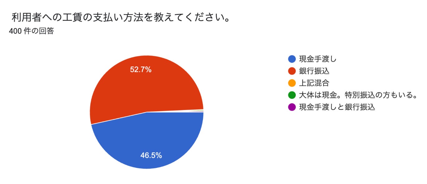 利用者に支払われる工賃は、46.5%が現金手渡しです。