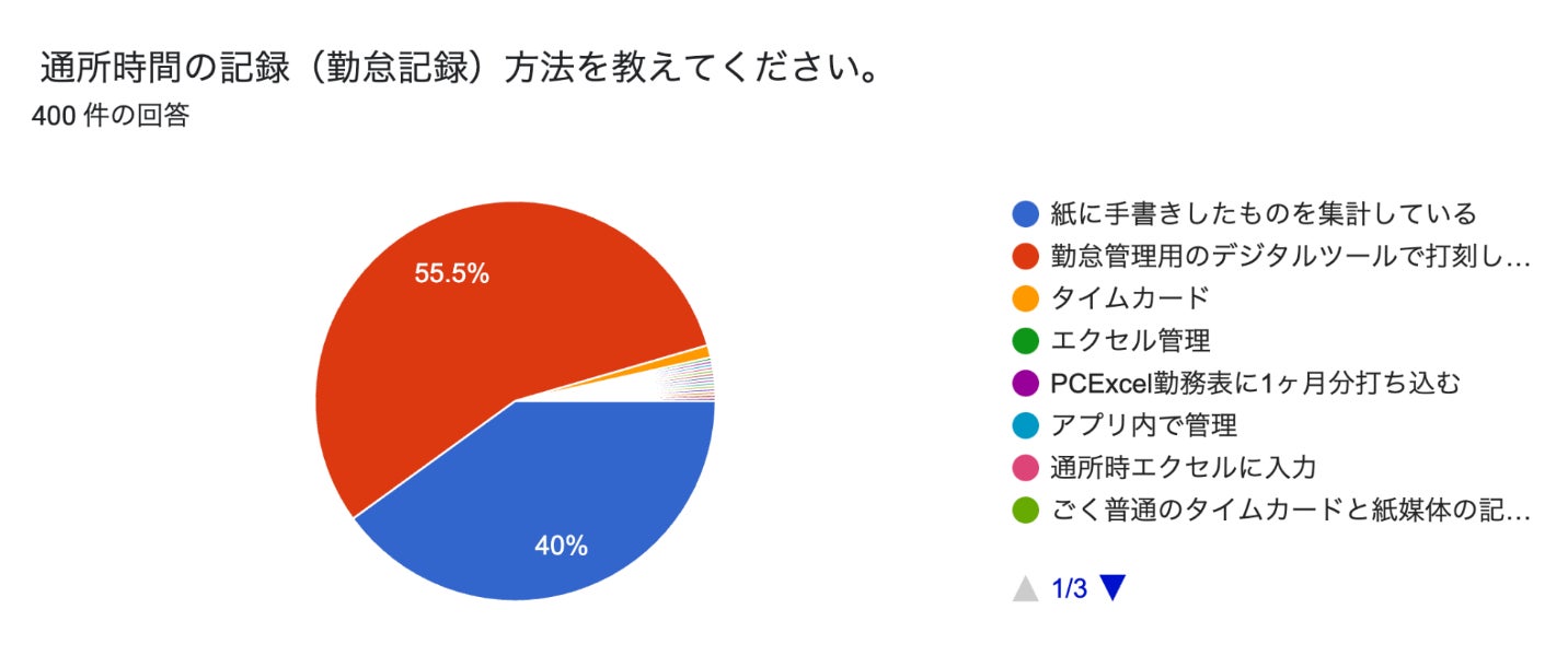 多くの自治体がサービス提供実績記録表という通所の実績をまとめた書類に本人の手書きサインをもらうルールにしており、電子化を認めていません。そのため、40%が勤怠を紙に手書きして集計しています。毎月管理者が紙の記録からExcelに転記作業をしているケースが多いです。