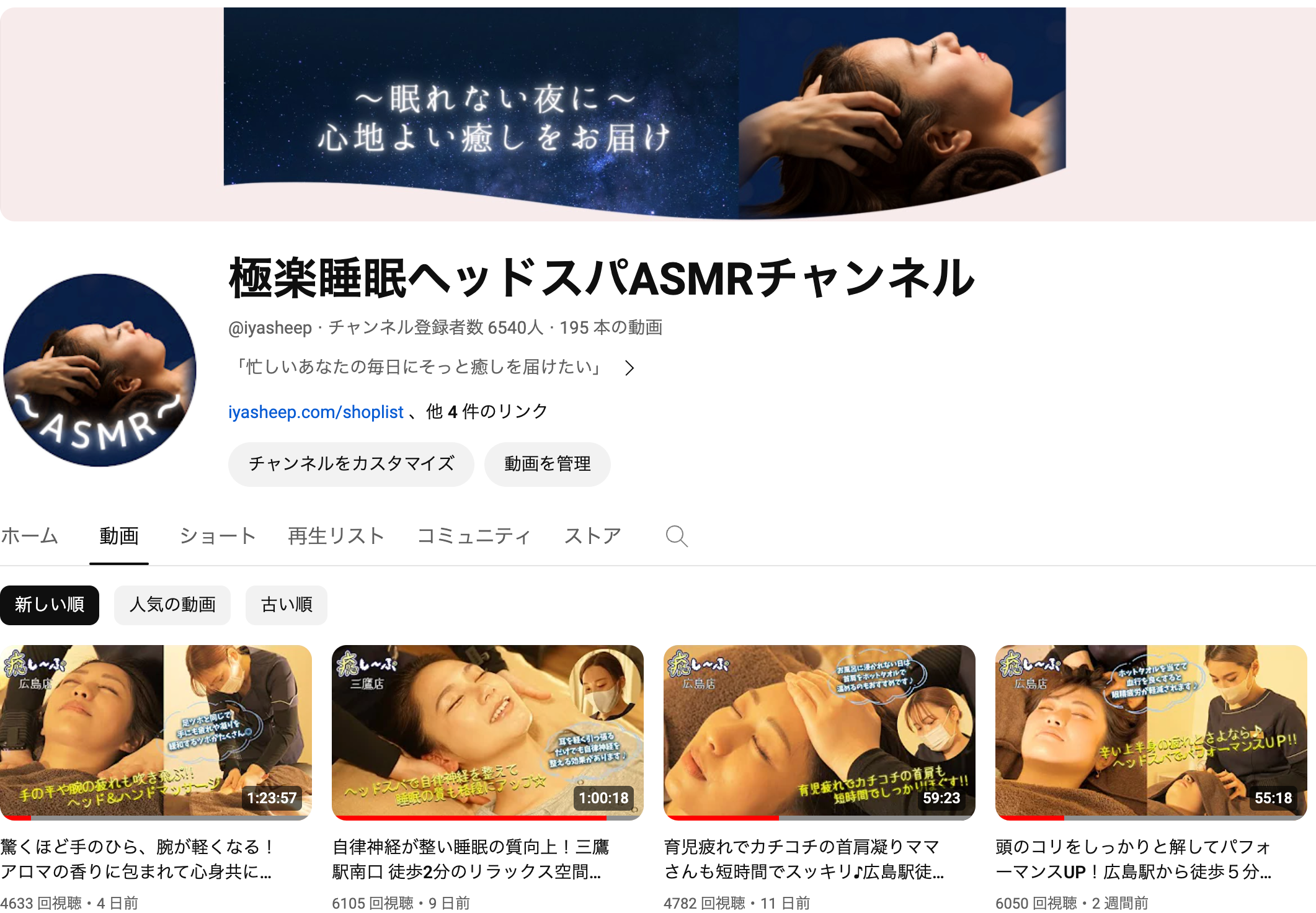 「極楽睡眠ヘッドスパASMRチャンネル」では映像と音で癒しをお届け