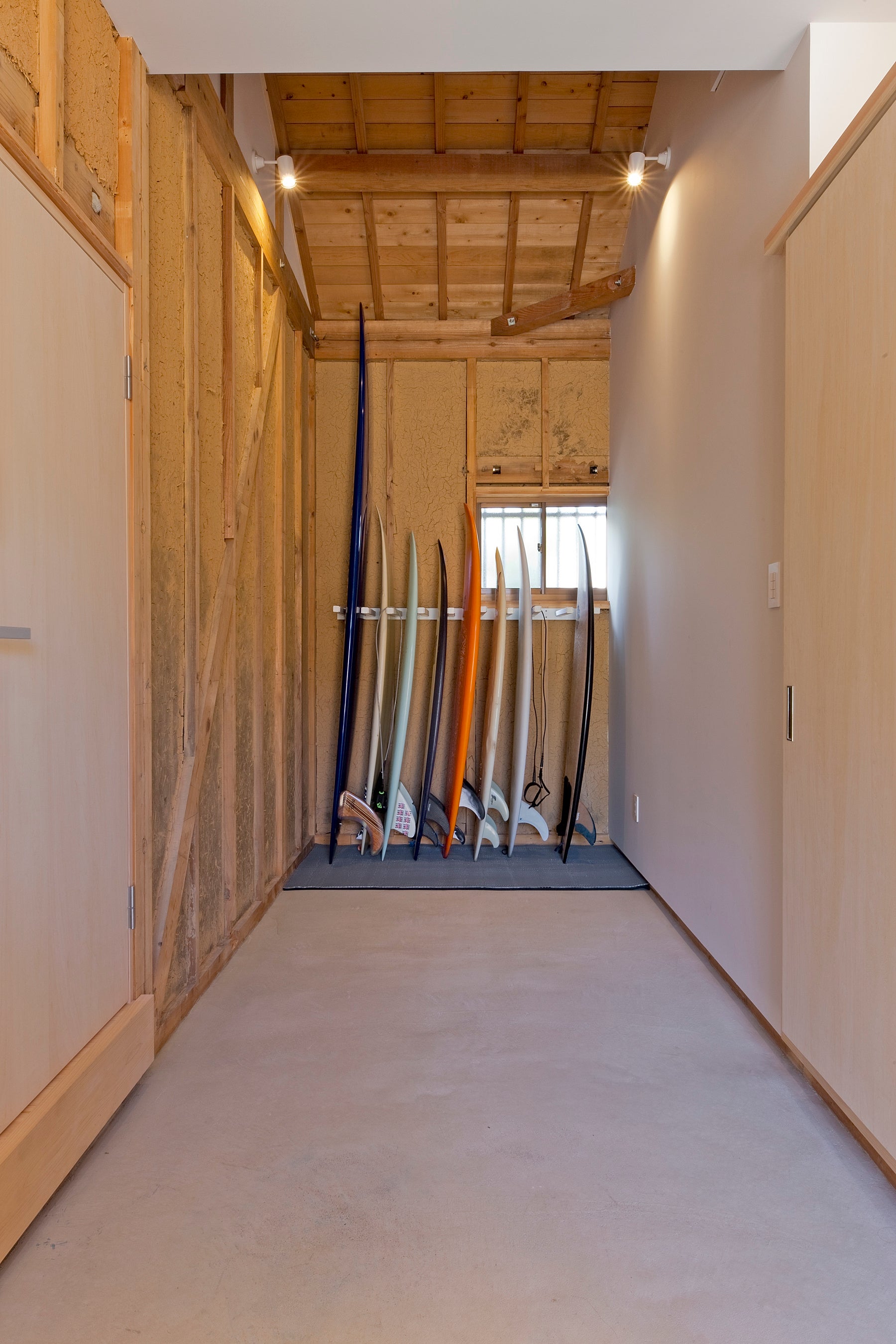 また、各居室にワーク用のデスクを設置しています。さらにボードロッカー、屋外シャワー等も用意し、仕事をしながらサーフィンもできるライフスタイルを想定してデザインしました。