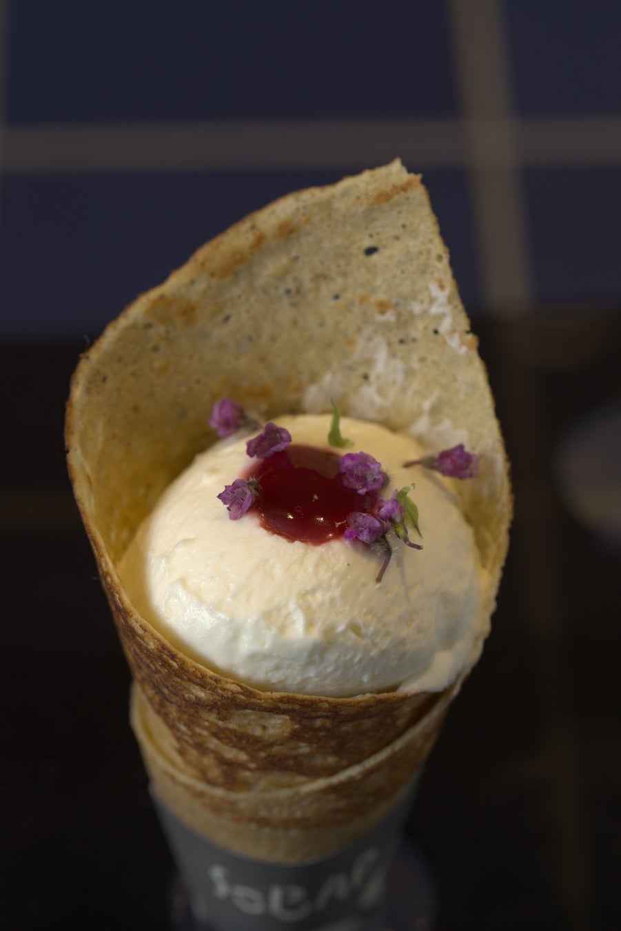ブランド名やデザイン・コンセプト設計、店舗デザイン、メニュー開発、パッケージなどの細部にわたり平子良太氏に監修していただきました。店舗の立地から発想し”TOKYO”をキーワードに洗練された店構え、手のひらサイズのそば粉クレープをイメージした愛らしさも大切にしたネーミングやロゴデザインです。また、シェフならではの発想をふんだんに取り入れたメニューラインナップは、クレープの王道な美味しさから意外な食材の組み合わせ、1皿の料理のような発想など個性豊かな18種類が並びますので是非お楽しみください。