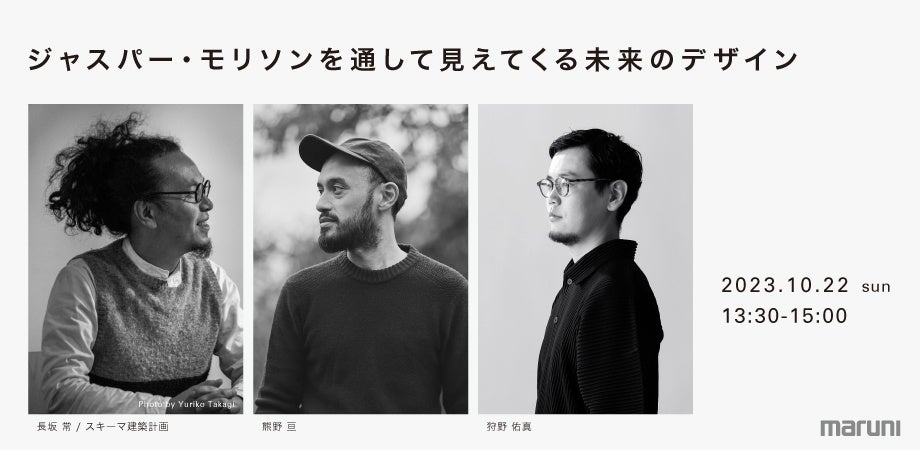 また、これらの新作発表に合わせ同会場にて10 月19 日(木)~ 10 月31 日(火) の期間、これまでジャスパー・モリソンがMARUNI COLLECTION のためにデザインしたプロダクトを一堂に集め展示するほか、建築とプロダクトの関係性を探るべく、建築家・長坂 常、プロダクトデザイナー・熊野 亘、デザイナー・狩野 佑真をゲストに迎え、トークイベントも開催いたします。