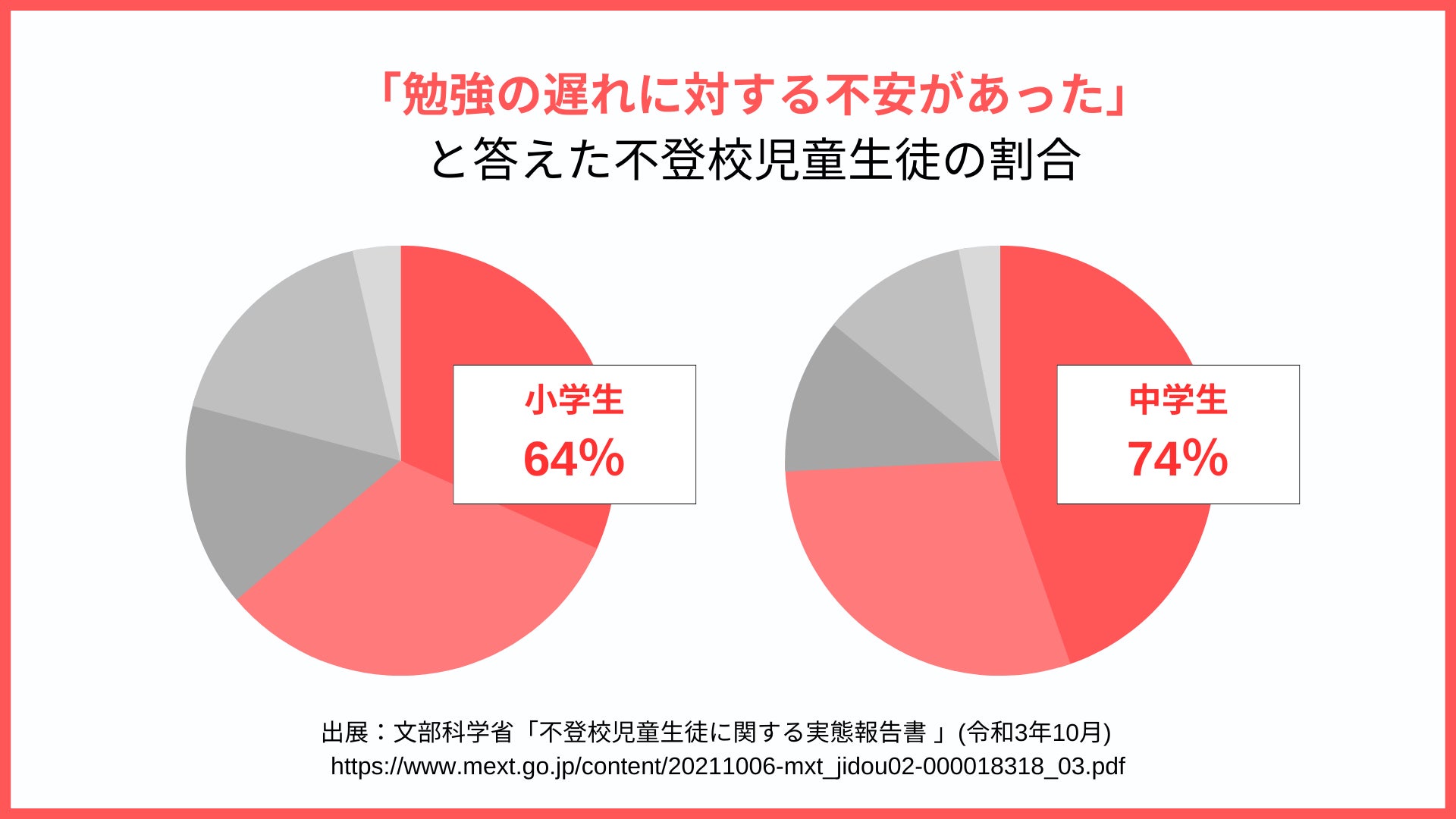 不登校小学生の64%、不登校中学生の74%が「勉強の遅れに対する不安があった」と回答