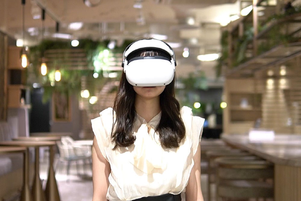 ヘッドマウントディスプレイを装着するだけで、アバターとなってOliverse®を体験。バーチャル空間によって、インテリアイメージをより具体的に確認することが可能です。