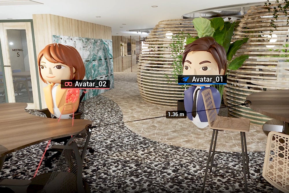 デザイナーと一緒に、アバター同士でコミュニケ―ションを取ることも可能です。まるでその空間にいるような感覚で、リアルタイムにインテリアデザインを共有することができます。