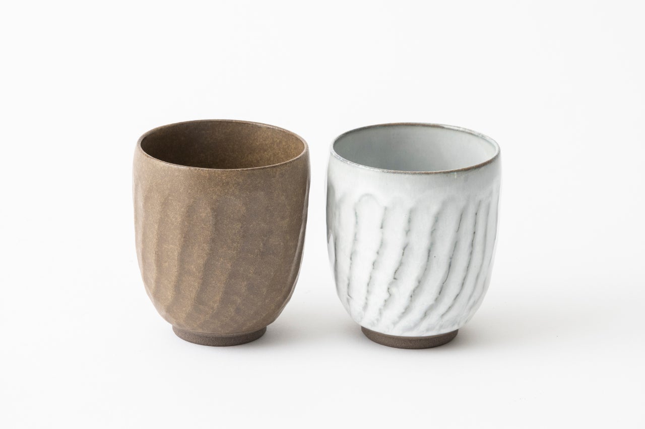 長崎県波佐見町にあるご家族3代で営まれる小さな窯元瑞幸窯で作られています。「ねじりそぎ」はお茶を注ぐと、ゆっくり優しく温まり、磁器と比べて保温性があり、シノギの凹凸のおかげで手になじみ、持った時に安心感があります 。アコメヤオリジナル。