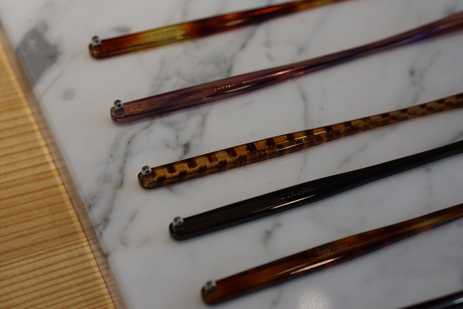 キャンペーン対象の「sasaki celluloid color」はメガネのフロントとテンプルをお好みのデザインとカラーで組み合わせることができるセミカスタムシリーズです。フロントは6種類×3色、テンプルは2種類×9色からお選びいただけます。まさに店舗名である「OPTIQ TAILOR(眼鏡の仕立て屋)」の名に合うブランドです。セレクトされたアセテート生地は数量限定で、店舗でしか出会えない貴重なシリーズとなっております。製造工場直結店舗だからこそ可能な”選べるメガネ”をぜひお求めください。