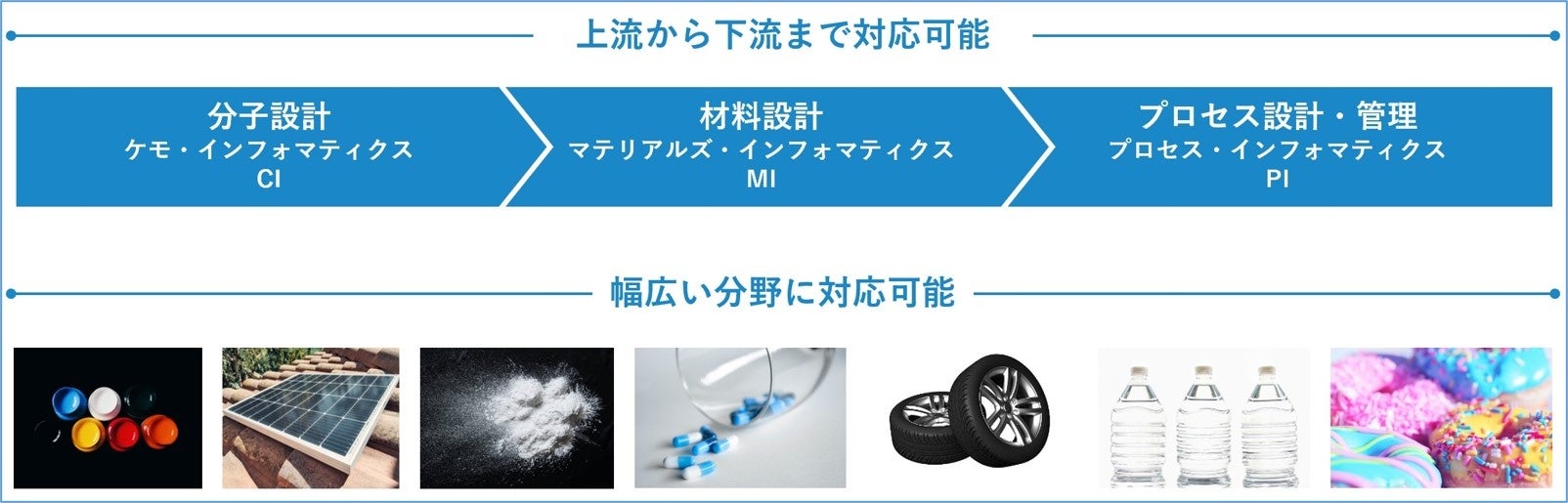 化学・工学分野の分子・材料設計からプロセス設計・管理まで一つのプラットフォームで扱え、無機・有機・高分子材料に加え創薬や食品等、様々な技術テーマで活用可能です。また、操作手順書、技術資料、操作説明動画を掲載したサポートサイトや問い合わせ窓口を準備しており、データサイエンス初学者でも安心して利用できます。2022年4月のサービスリリース以来、30社で導入されており、高い評価を得ています。