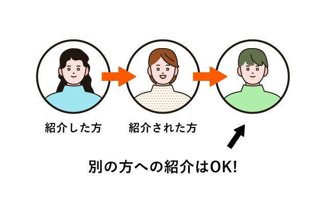 紹介した方と紹介された方で、相互に紹介し合う行為、ご自身を紹介する行為は対象外です。