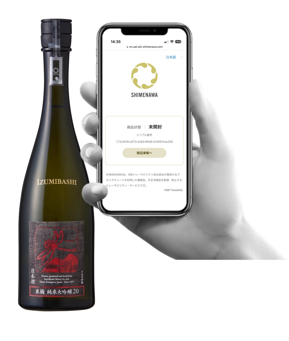 泉橋酒造向けにも株式会社Uni Tag(本社:東京都中央区、代表取締役社長:半野 巧也、以下「Uni Tag」)と共同開発した「SHIMENAWA(しめなわ)」ロゴ入り専用NFCタグを採用しています。
