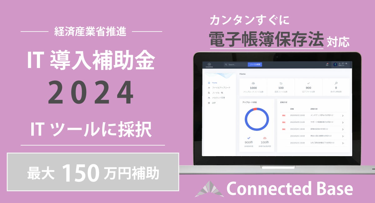 経済産業省の推進する「IT導入補助金2024」対象ITツールに「Connected Base for 電子帳簿保存法」が継続採択〜最大150万円補助(2年間)〜