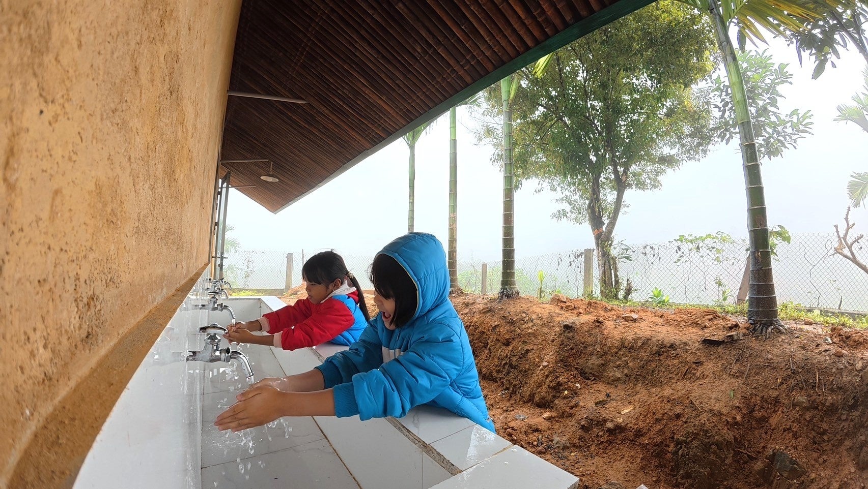 Nuoc Ui小学校の新校舎は、周囲の自然環境に調和しつつ、防災に配慮した設計となっています。この学校は、ベトナム出身で世界的に活躍するVo Trong Nghia氏にご縁を頂き、無償に近い形で設計をして頂きました。東京大学大学院でも学んだ経験を持つ氏の設計により、機能的で美しい学校が完成しました。