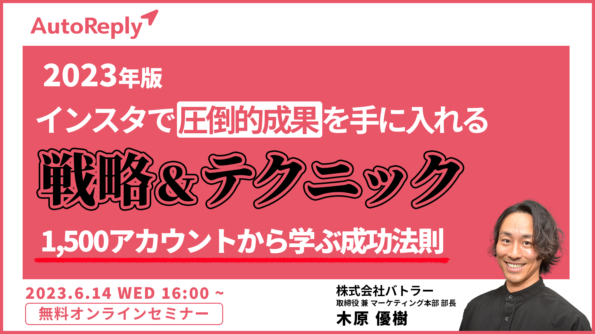 ・セミナー名:2023年版!インスタで圧倒的成果を手に入れる戦略&テクニック 1,500アカウントから学ぶ成功法則