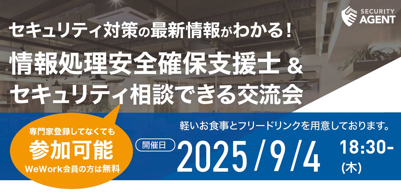 サイバーセキュリティ専門メディア「サイバーセキュリティ.com」(https://cybersecurity-jp.com/)を運営する株式会社セキュアオンライン(所在地:千葉県柏市、代表取締役:角田優剛)は、同じく運営するセキュリティ専門家と企業をマッチングするプラットフォームサービス『セキュリティエージェント』(https://securityagent.jp/)のコミュニティにて、セキュリティに関心のある皆様に向けた交流イベント「セキュリティ交流会」の第9回目を、2025年9月4日(木)に開催いたします。