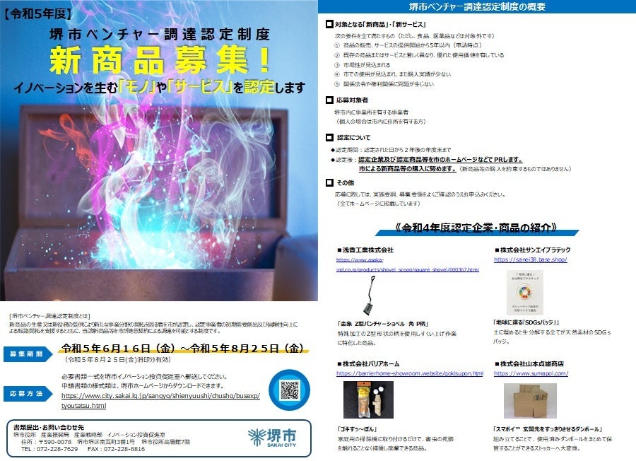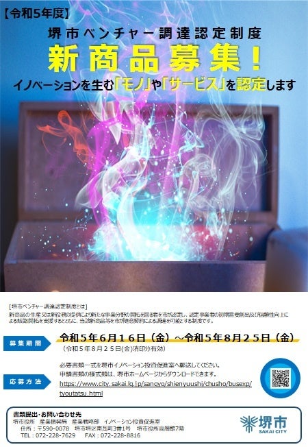 堺市ベンチャー調達認定制度 令和5年度新商品募集!