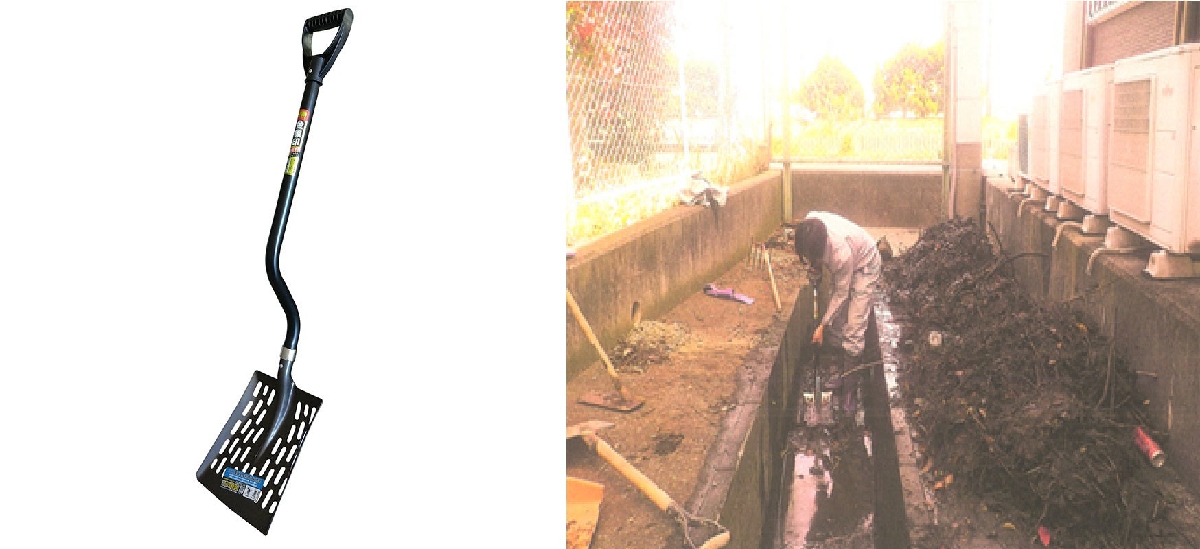 産官学共同研究により開発。特殊加工のZ型形状の柄を使用しすくい上げ作業に特化したショベル。