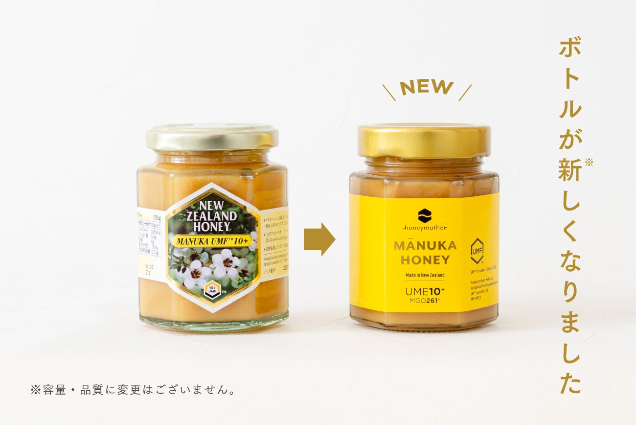 今回の新デザインは、UMFのグレードの違いがカラーでわかりやすいことに加え、ギフトで詰め合わせた時にも美しい点がポイントです。