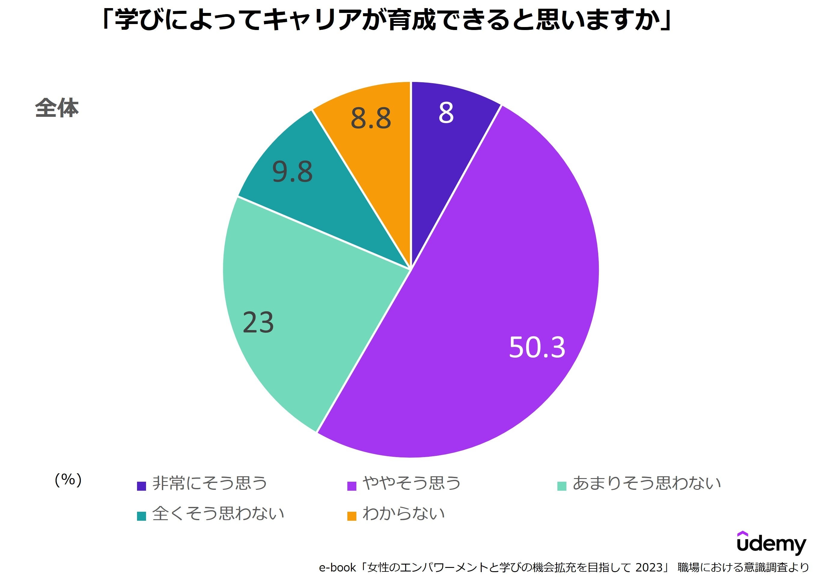「学びによってキャリアが育成できると思いますか」という質問には、半数以上の58.3%が「そう思う」と回答。「学び」を通じたキャリア育成への期待値が高いことが分かりました。