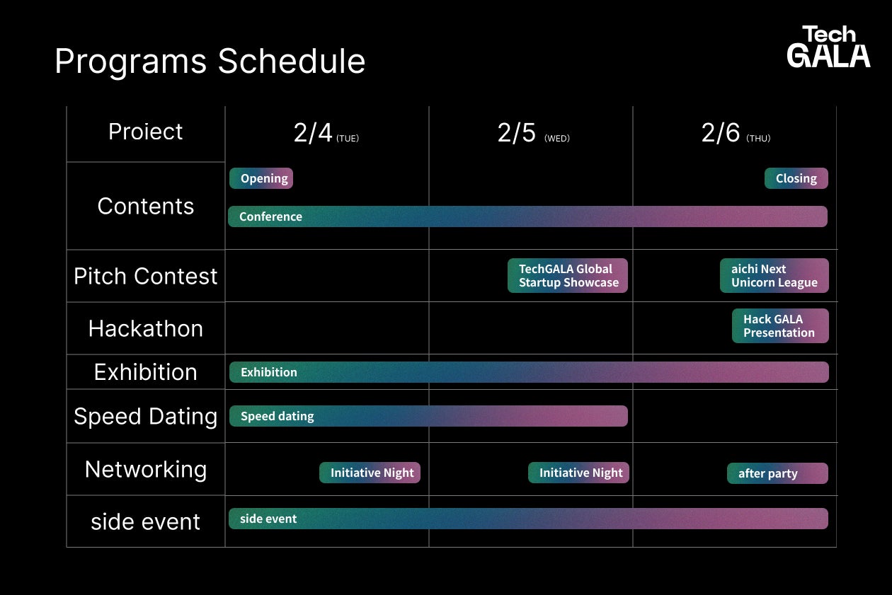 2025年2月4日(火)から愛知県名古屋市で3日間開催される、地球の未来を拓くテクノロジーの祭典「TechGALA Japan」まで残り2週間となりました。本イベントの見どころをご紹介します。